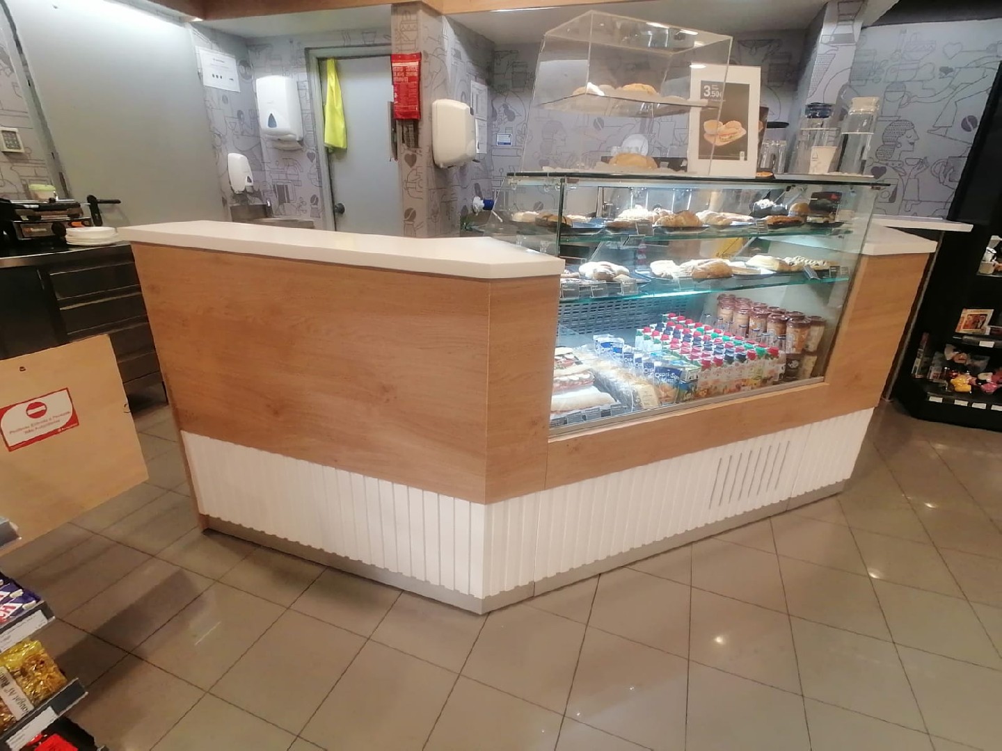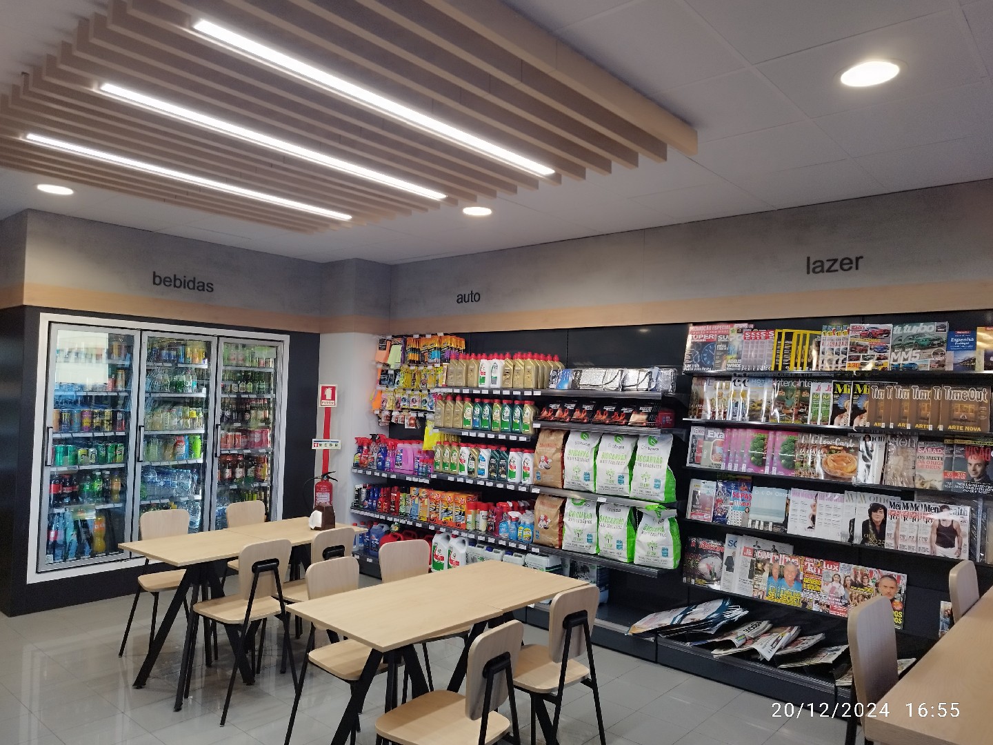 Balcões de pagamento e de cafetaria, estantaria, equipamentos frigoríficos, imagem corporativa, mobiliário de retalho, armazém, escritório, cofres e transporte pneumático de valores.